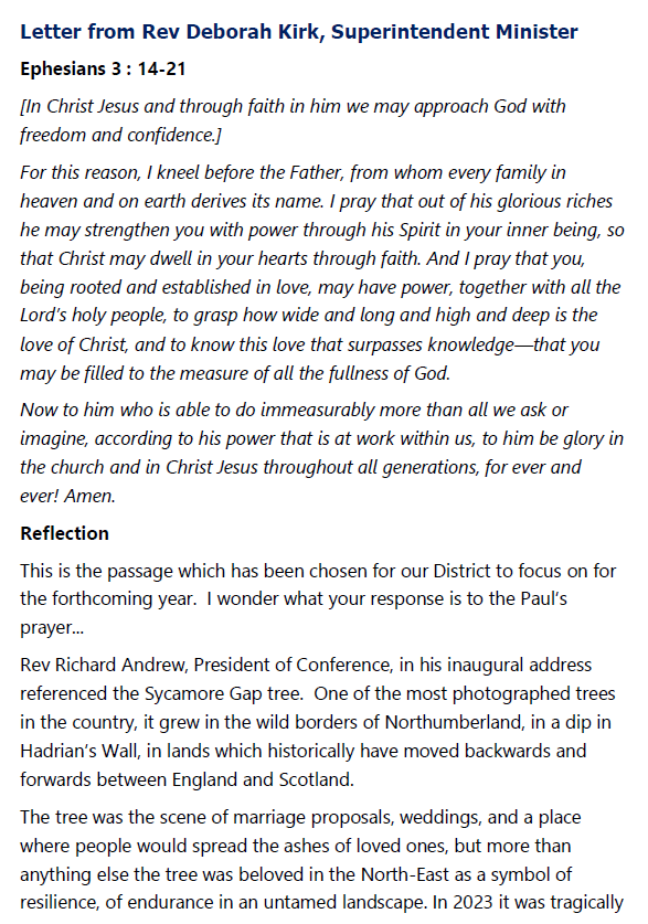 A monthly update from Rev Deborah Kirk, Superintendent Minister